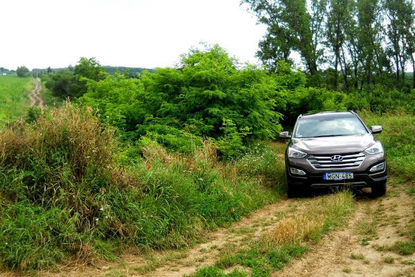 Amíg ezeken gondolkodtam, hazaértem. Nincs kedvem azonban még eltenni a kocsit a garázsba, inkább elviszem egy olyan helyre, ahol más oldaláról is bemutatkozhat az autó: terepre. Egy nyolc számjegyű összegért kapható kölcsönautóval azért óvatosan bánik az ember, így én is ebben a szellemben hajtottam le a kikövezettről a dűlőútra, amely egy viszonylag kis forgalmú töltésszakaszhoz vezet. Az autó könnyedén vette az akadályokat, a buckákon légies könnyedséggel, de azért óvatos tempóban haladtunk, élvezve a kényelmes, puha rugózást. Az autó ugyanilyen könnyedséggel szökkent fel a töltésre is, a meredek lefelé vezető úton pedig kipróbálhattam a lejtmenet-vezérlőt is, amely nem engedi 10-15 km/h fölé gyorsulni az autót, miközben a blokkolásgátlóhoz hasonló kattogással jelzi működését.