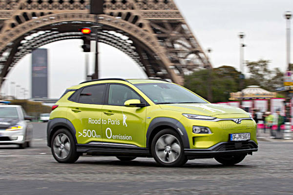 Az Ioniq mellett a Hyundai a Kona Electric modellel az első villanymotoros szabadidő-autóját is kínálja ügyfelei számára. Az ADAC 2018-ban tesztelt 108 járműve közül a Kona Electric az Ecoteszten az ötödik helyen végzett. Az ADAC tesztelői a helyben semmilyen károsanyag-kibocsátással rendelkező Kona Electricnek a maximális 50 pontot adták, míg a széndioxid-kibocsátásra 46 pontot kapott és ezzel a megszerzett pontszámával a Kona Electric a nyolcadik helyen áll.