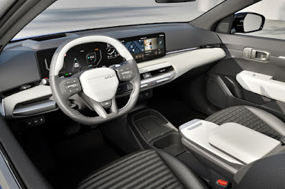 Az EV4 high-tech belső terében váratlan kontrasztok jelennek meg formában, színben ésanyaghasználatban egyaránt. A minimalista, mégis vonzó dizájn precíz és funkcionális teret teremt, a modern karakter pedig a lágy, emberközpontú dizájnt ötvözi az ipari témákkal. A Kia „Opposites United” dizájnfilozófiája az EV4 tágas belső terében is megnyilvánul, különösen a szabadon lebegő felhasználói felületen és az aszimmetrikus, kétküllős kormánykeréken, amelyek inspiráló dizájnt ötvöznek a fokozott funkcionalitással.